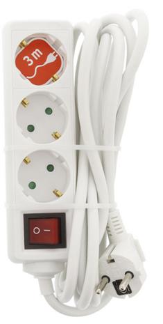 Jatkopistorasia 3-Paikkaa 3 m Valkoinen - 3 x Schuko