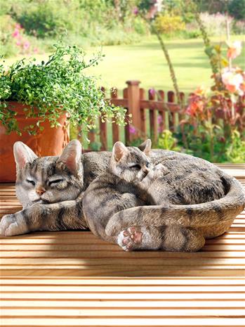 KLINGEL "Koriste-esine kissaemo ja kissanpoikanen harmaa"