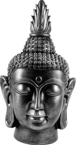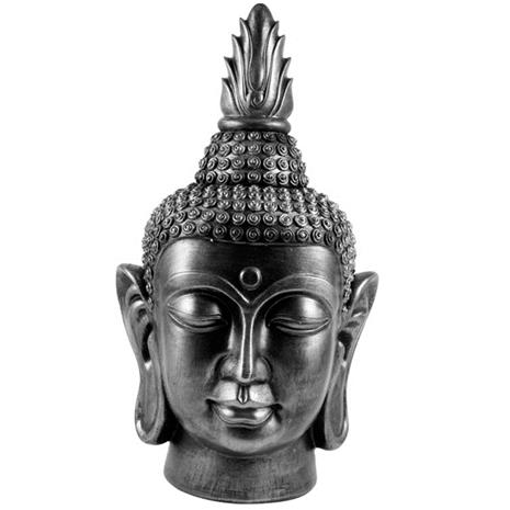 Stort Buddhahuvud i svart och silver 40 cm hög