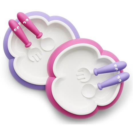 Lasten ruokailusetti, 3 osaa, Vaaleanpunainen/violetti