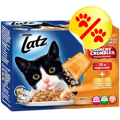 Latz "Crunchy Crumbles" -lajitelma 20 x 100 g + höyste 80 g - lihalajitelma + kalalajitelma