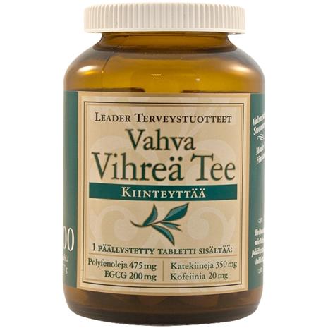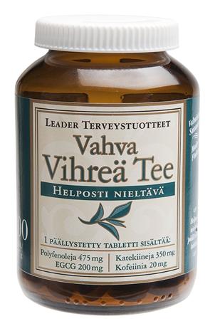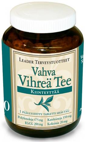 | Tuotekuvaus | Vahva Vihreä Tee – Leaderin vihreä tee -kapselit aktivoivat aineenvaihduntaa ja tehostavat rasvanpolttoa! Yksi tabletti sisältää 500 mg vihreää teetä., Vahva Vihreä Tee Leaderin vihreä tee -kapselit aktivoivat aineenvaihduntaa ja tehostavat rasvanpolttoa! Yksi tabletti sisältää 500 mg vihreää teetä. |