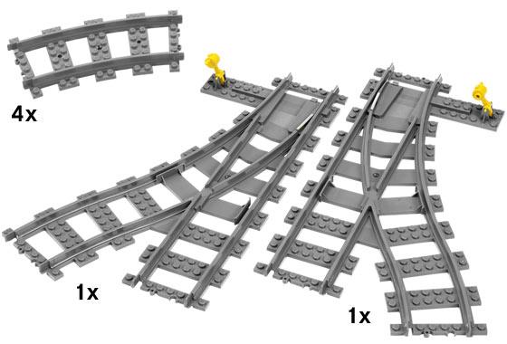 Lisävaihteiden avulla voit pidentää rataasi. Verkkovirtaa ei tarvita – toimii yhdessä IR-junatuotteiden 7897 ja 7898 kanssa, ja voidaan yhdistää kiskoihin 4515, 4519 ja 4520.