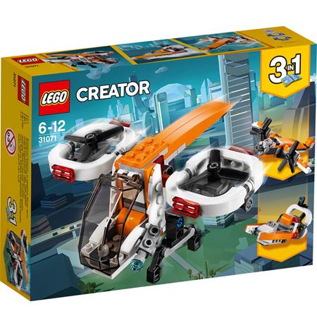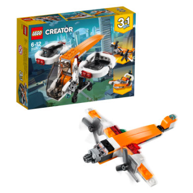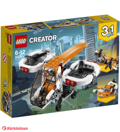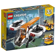 | Tuotekuvaus | Nouse taivaalle ihastelemaan lintuperspektiiviä upealla 3-in-1 Lennokkitutkijalla, jossa on iso avattava ohjaamo, kaksi roottoria, n ostokoura ja upeat oranssin, valkoisen ja mustan sävyt. Lähetä lennokki suorittamaan salaisia tehtäviä, kuvaa toimintaa taivaalta käsin ja lähetä se takaisin tukikohtaan. Kun olet valmis, rakenna Lennokkitutkija uudestaan ja vie se suolle tehokkaalla Suoveneellä tai kokeile uhkarohkeita lentoratoja perinteisellä Potkurikoneella. |