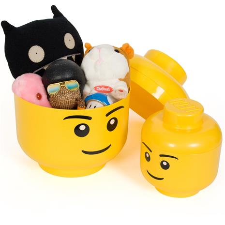 | Tuotekuvaus | LEGO-hahmon pään muotoinen säilytysrasia. Voidaan yhdistää LEGO Storage Bricks- säilytyslaatikoihin. Koko: 18 x 16 cm., LEGO-palikoiden lajitteluun ja säilytykseen. Kaada palikat säilytyslaatikkoon. Ravista varovasti, jolloin LEGO-palikat putoavat automaattisesti pienille, keskikokoisille ja suurille palikoille tarkoitettuihin lokeroihin. Nosta lokerot sitten erikseen päästäksesi käsiksi palikoihin. Sisäänrakennettu kahva. Koko: n. 16 x 16 x 19,5 cm |