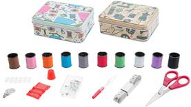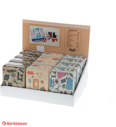 Ompelutarvikesetti metallilaatikossa 2 erilaista