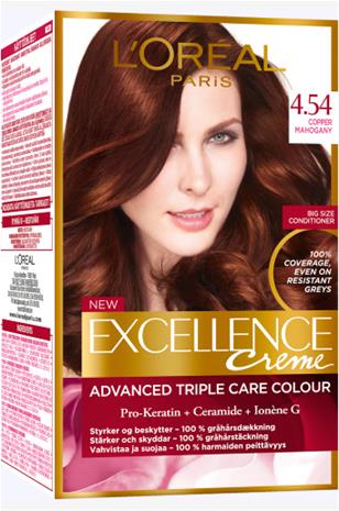 L'Orä©al Paris" "Excellence 4.54 Copper Mahogany Tummanruskea Mahonkikupari