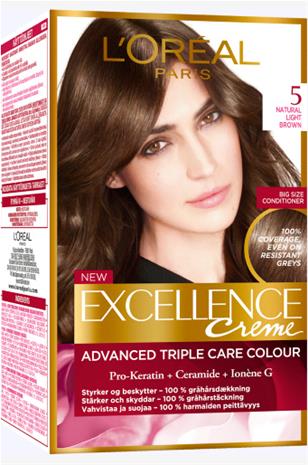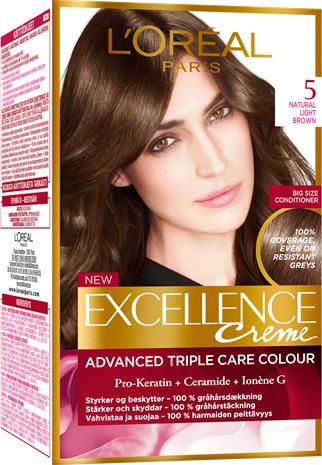 L'Orä©al Paris" "Excellence 5 Natural Light Brown ruskea