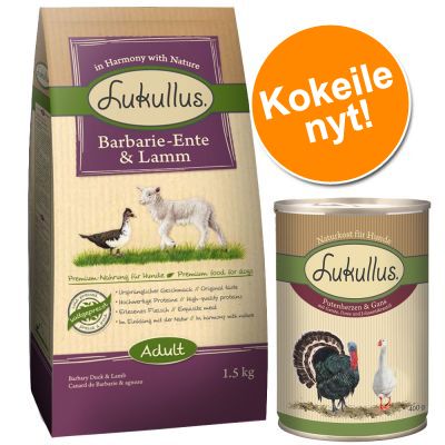 Lukullus-kokeilupakkaus: 1,5 kg + 6 x 400 g märkäruokaa - Charolais-Beef & Trout 1,5 kg + 6 x 400 g nauta ja kalkkuna