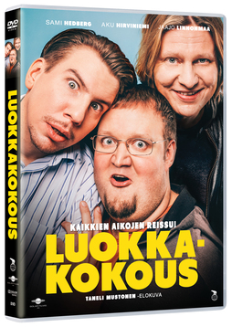 | Tuotekuvaus | Luokkakakokous (2015) on Aku Hirviniemen, Sami Hedbergin ja Jaajo Linnonmaan tähdittämä äijäkomedia kolmen vanhan kaveruksen irtiotosta reteän rellestämisen merkeissä. Hirviniemen esittämä Niklas kokee elämänsä jämähtäneen yksitoikkoisille urille, Hedbergin esittämä Antti puolestaan tuskailee avioeron jälkimainingeissa ja Linnonmaan esittämä Tuomas on näennäisesti täydellistä taiteilijaelämää viettävä rokkari. Luokkakokous on häpeilemätön elokuva, joka pyörii räävittömän huumorin, seksin ja nuoruusvuosien nostalgian ympärillä. Mitä voikaan tapahtua, kun kolmikko palaa yhteen ja laittaa kunnolla ranttaliksi luokkakokouksen merkeissä? Komedia rikkoi ilmestymisvuonaan katsojaennätyksiä yli 500 000 katsojalla ja elokuva on saanut myös jatko-osan jo seuraavana vuonna ilmestymisestään. |