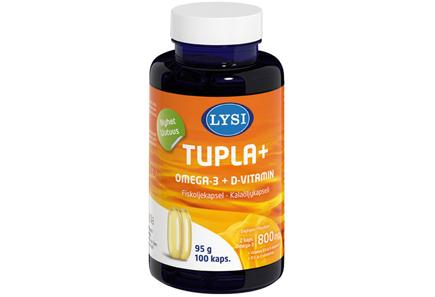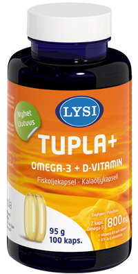 Lysi Tupla+ Omega-3 + D-vitamiini, 100 kaps. hintaan 8.89 €
