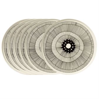 Marimekko Siirtolapuutarha lautanen Ø 25 cm, 6 kpl musta-valkoinen