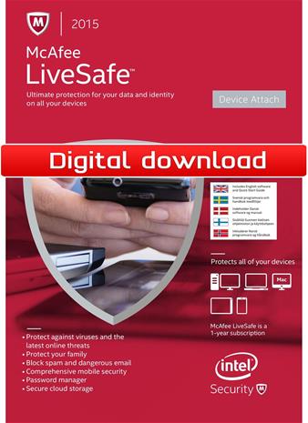 McAfee LiveSafe 2015, tietoturvaohjelma hintaan 44.9 €