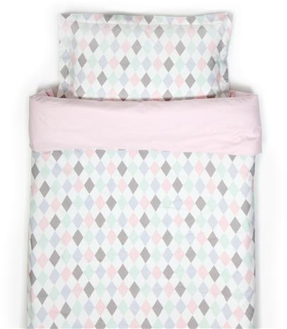| Tuotekuvaus | NG Babyn harlekiini -sarjan pussilakanasetti jossa on söpöt pastellisävyt ja laadukkaat tekstiilit. Valmistettu 100% ä–KO-Tex ympäristösertifioidusta puuvillasta. Soveltuu kehtoon ja vaunukoppaan. |