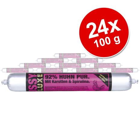 Pussy Deluxe -hyytelö ja -mousse 24 x 100 g - Deluxe-hyytelö: kana, porkkana & spirulina hintaan 29.99 €