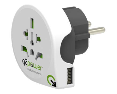 Q2power Travel Adapter Grounded 1xusb World - Eu (schuko) White
