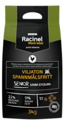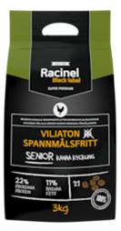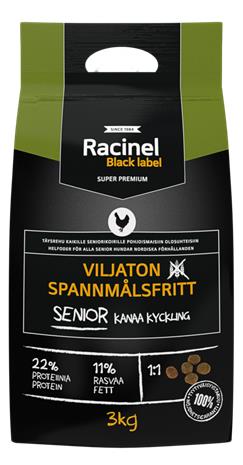 | Tuotekuvaus | Racinel Black Label Senior Chicken on seniorikoiran viljaton täysrehu. Tarjoiluvalmis super premium kuivaruoka, johon on lisätty luonnollisia antioksidantteja. Valmistuksessa on käytetty kanaa eikä lainkaan yleisesti yliherkkyyksiä aiheuttavia raaka-aineita (viljaa, viljagluteeineja, soijaa, märehtijäeläimiä, porsasta tai maitotuotteita). Ruoan koostumus kattaa kaikkien seniorikoirien päivittäisen ravitsemustarpeen. Voidaan tarjota sellaisenaan tai vedellä kostutettuna. Varmista, että koiralla on aina raikasta vettä tarjolla.Annostelu: Tarkka ruoan määrä riippuu koiran iästä, aktiivisuudesta ja rodusta. Tarjoa koiralle taulukon ilmoittama määrä ruokaa jaettuna yhteen tai kahteen annokseen päivässä. On suositeltavaa tarkkailla koiran painoa ja lisätä tai vähentää annoskokoa tarpeen mukaan. Taulukon ohje on suuntaa-antava. Koiran koko Päivittäinen ruoka-annos 1 - 5kg 30 - 105g 0,7 - 2,5dl 5 - 10kg 105 - 175g 2,5 - 4,2dl 10 - 25kg 175 - 350g 4,2 - 8,3dl 25 - 45kg 350 - 540g 8,3 - 12,9dl 45kg + 540g + 12,9dl + Koostumus Käsitelty ja hydrolysoitu (paloiteltu) eläinvalkuainen (vähintään 16,5% kanaa, ankkaa ja kalkkunaa), peruna, herneet, herneleseet, perunatärkkelys, juurikasleike (kuidut), eläinrasva (kana), lohiöljy (kylmäpuristettu), dikalsiumfosfaatti, raakalesitiinit, kalsiumkarbonaatti, glukosamiini, kondroitiini, sinkkimetioniini, mojaven jukkapalmu, orgaaninen seleeni kelaattina.Lisäaineet per kg Luonnolliset antioksidantit: luonnolliset tokoferolit, rosmariiniuute, rapsiöljy, raakalesitiinit, sitruunahappo, piidioksidiVitamiinit: Vitamiini A (retinolihappo) 21000IU, Vitamiini D3 (kolekalsiferoli) 2100IU, Vitamiini E (alfa-tokoferoli) 210mg, Vitamiini C (askorbiinihappo) 33mg, Hivenaineet: Jodi (kalsium, vedetön) 8mg, sinkki (ZnSO4, H2O) 272mg + sinkkimethioniini 200mg, seleeni (Na2SeO3) 0,22mg + seleeni kelaattina 0,20mg.Ravintoainekoostumus Valkuainen 22,0%, Rasvapitoisuus 11,0%, Raakakuitu 9,0%, Hehkutusjäännös 6,0%, Kosteus 9,0%, Kalsium 1,0%, Fosfori 0,7% |