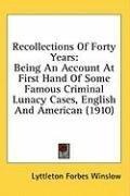 Recollections of Forty Years: Being an Account at First Hand of Some Famous Criminal Lunacy Cases, English and American (1910)