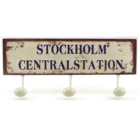 Retro metal plate with three hooks Stockholm Central Station
