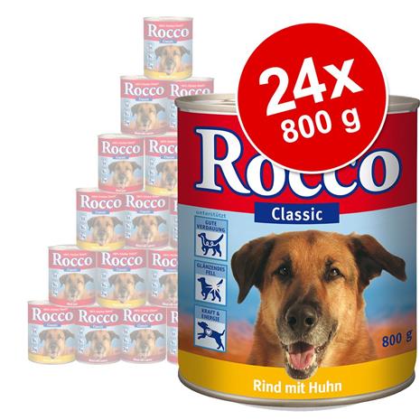 Rocco Classic -säästöpakkaus, 24 x 800 g - mix: naudanliha, lohi, kana, siipikarjansydän, riista, pötsi