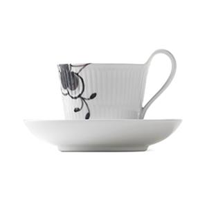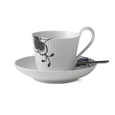 Royal Copenhagen Black Fluted mega musta kuppi ja aluslautanen 2 25 cl - korkea korva