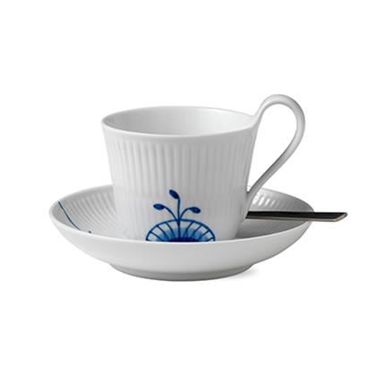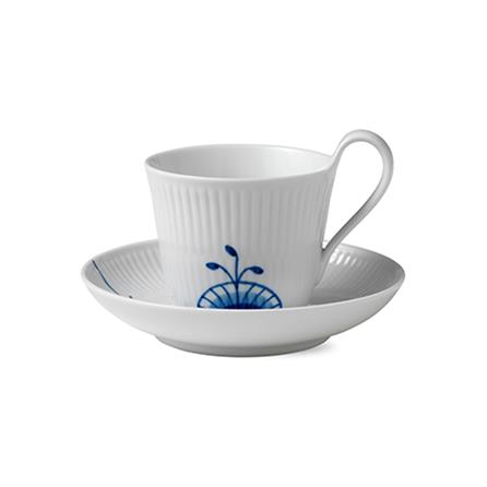 Royal Copenhagen Blue Fluted mega sininen teekuppi ja aluslautanen 25 cl - korkea korva