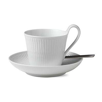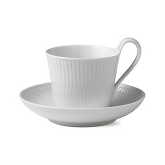 Royal Copenhagen White fluted kuppi ja aluslautanen 25 cl - korkea korva