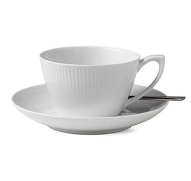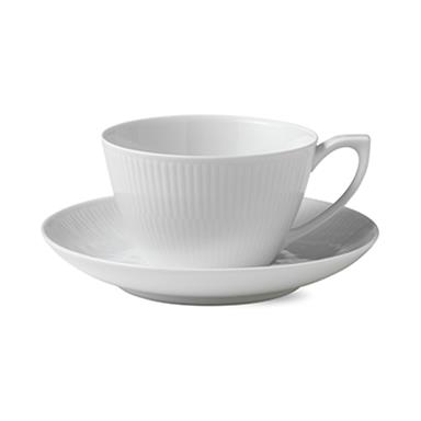 Royal Copenhagen White fluted teekuppi ja aluslautanen 28 cl