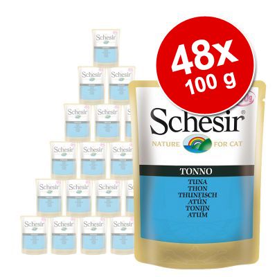 Schesir in Jelly Pouch -säästöpakkaus, 48 x 100 g - tonnikala & meribassi hintaan 33.99 €