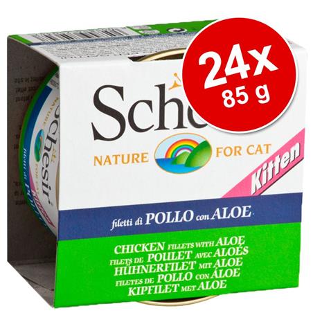 Schesir Kitten -säästöpakkaus 24 x 85 g - Sekoituspaketti: kanafile & aloe + tonnikala & aloe hintaan 19.99 €