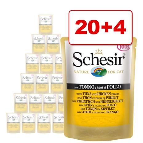 Schesir Pouch -säästöpakkaus, 24 x 100 g - tonnikala, kana & kinkku hintaan 19.99 €