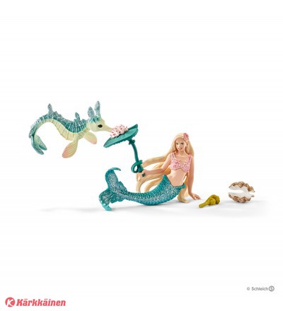 | Tuotekuvaus | Michellellä on uusi ystävä. Pienen merihevosen nimi on Miniki. Se tapasi merenneidon muutama viikko sitten meripuutarhassa eikä enää poistu hänen viereltään. Mihin Michelle uikaan, Miniki seuraa perässä. Öisin pieni lemmikki nukkuu Michellen kukkatalon pienellä lehdellä, ja kun merenneito menee puutarhaan, Miniki liehittelee häntä innoissaan. |