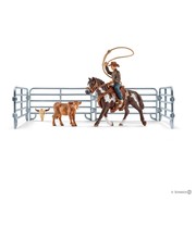 | Tuotekuvaus | Tiimilassoaminen on peräisin lehmipoikien työstä. Jotta karja voidaan tarkistaa mahdollisten loukkaantumisten ja sairausten varalta, ne on saatava kiinni. Usein suurempien eläinten kiinnisaamiseen tarvittiin kaksi lehmipoikaa. Tästä syntyi rodeo. Lajissa ensimmäinen lehmipoika tai lehmityttö heittää lasson vasikan sarvien tai kaulan ympärille. Toinen lehmipoika tai lehmityttö heittää lasson sen takajalkojen ympärille. Lehmipojat/lehmitytöt tekevät kaiken hevosen selästä käsin. Heidän on heitettävä köysi erittäin tarkasti ja heidän on oltava erinomaisia ratsastajia. |