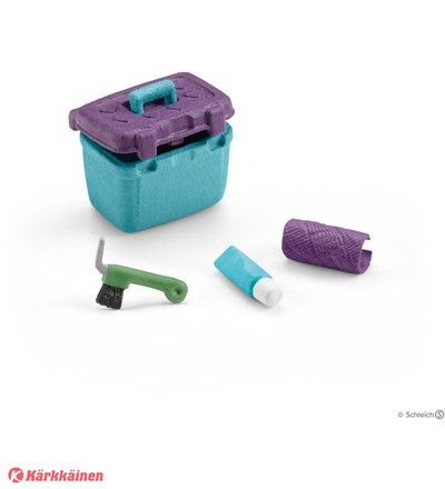 | Tuotekuvaus | Hevosen säännöllinen, hellä hoito luo molemminpuolista luottamusta ratsastajan ja eläimen välille. Puhdistaminen on luonnollisesti tärkeää myös terveyden kannalta. Kauniissa välinelaatikossa ratsastajalla on kaikki tarvittava tätä varten. Erityisesti ratsastuksen jälkeen kavioista on puhdistettava niihin tunkeutuneet pikkukivet. |