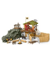 Kohti villejä seikkailuja! CROCO-viidakontutkimusasema ja sen monet leikkitoiminnot ja jännittävät ominaisuudet odottavat sinua. Lähde tutkimusretkelle villiin viidakkoon ja tutustu metsänvartija Tomin kanssa harvinaisiin eläinlajeihin, hoida loukkaantuneita eläimiä ja löydä salainen aarre CROCO-kallon sisältä! Metsänvartija Tom tiimeineen suorittaa jännittävää tehtävää. CROCO-viidakontutkimusasema on villien seikkailujen lähtöpaikka. Täältä eläinlääkäri Mary ja metsänvartijat Tom ja Alex lähtevät tutkimusretkilleen mönkijällä tai kumiveneellä. He ovat kuulleet lisäksi salaisesta aarteesta, joka on CROCO-kallon sisällä. Voitko auttaa heitä löytämään aarteen? Suuri leikkisarja sisältää tutkimusaseman, avattavan CROCO-kallon, aarteen ja tietenkin runsaasti eläimiä ja varusteita. Tutustu myös muihin CROCO-tutkimusasemaan liittyviin leikkisarjoihin ja täydennä omaa leikkimaailmaasi! |
