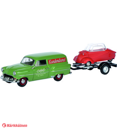 Schuco Opel Olympia + Traileri mittasuhde 1:43
