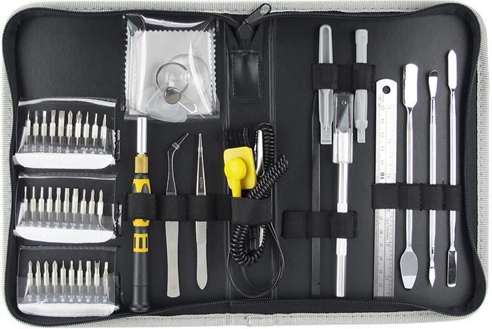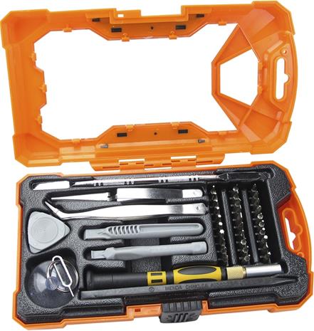 | Tuotekuvaus | 45-osainen työkalusarja, joka sisältää kaiken tarvittavan avataksesi ja purkaaksesi mm. kannettavia tietokoneita, tabletteja ja älypuhelimia. Työkalut tulevat kätevässä säilytyslaatikossa, mikä helpottaa kuljetusta ja säilytystä. |