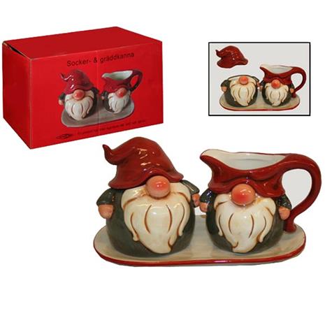 Socker- och gräddkanna, set på fat - Jultomtar