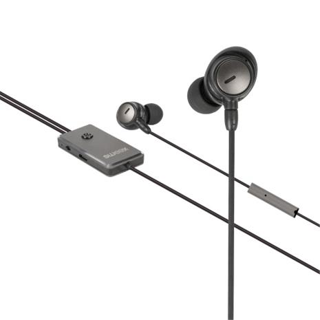 Anc-kuulokkeet (active noise cancelling, aktiivinen melun vaimennus), nappimalli, 3,5 mm, johdollinen, sisäänrakennettu mikrofoni, 120 cm, harmaa/musta