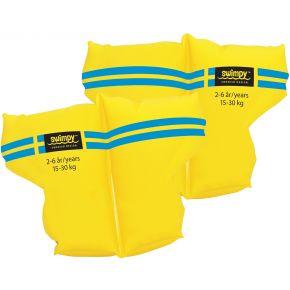 | Tuotekuvaus | Kellukkeet uimaan opettelevalle lapselle. Kellukkeet auttavat lasta pysymään kohoasennossa hänen ollessaan vedessä. Kaksinkertaiset ilmasäiliöt lisäturvallisuuden takaamiseksi. Kellukkeissa on varmuusventtiilit estämässä vuotoja. Kellukkeet on muotoiltu lapsen mukavuutta ajatellen. Valmistettu miellyttävästä materiaalista, joka ei hierrä. |