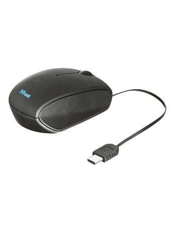 Trust USB-C Retractable Mouse - hiiri - optinen - 2 napit - musta