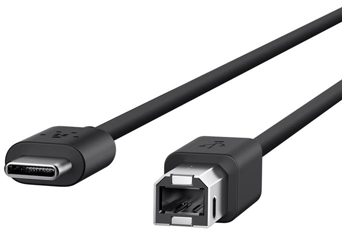 DELTACO USB 2.0 cable, Typ C - Typ B uros, 0.25m, musta