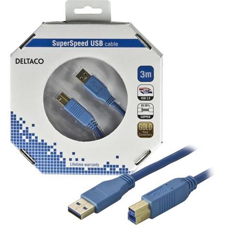 DELTACO USB 3.0 kaapeli, A ur - B ur, 1m, musta