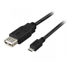 DELTACO OTG USB-sovitin A-tyyppi naaras - Micro B tyyppi uros, 0,2m, musta