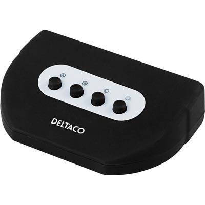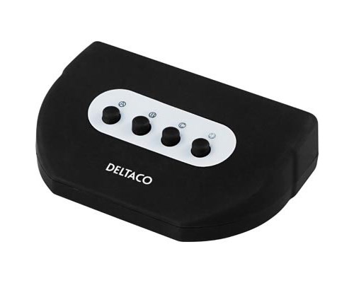 DELTACO manuaalinen USB-kytkin, 4 tietokonetta - 1 yksikkö, musta