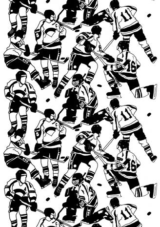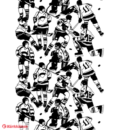 | Tuotekuvaus | Eveliina Netin suunnitteleman Ysiviis-vahakankaan kuosi palauttaa oitis mieleen vuoden 1995 kiekkokullan. Kuosi on taiteilijan näkemys kultaottelusta. Urheiluteemainen mustasinivalkoinen Ysiviis-vahakangas iskeytyy syvälle suomalaisuuden ytimeen. |