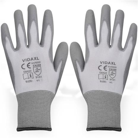 vidaXL Työhanskat PU 24 Paria Valkoinen ja harmaa Koko 9/L