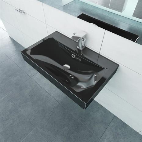 vidaXL 140687, ylellinen keraaminen pesuallas neliskulmainen lavuaari musta hanareiällä 60 x 46 cm hintaan 72 €