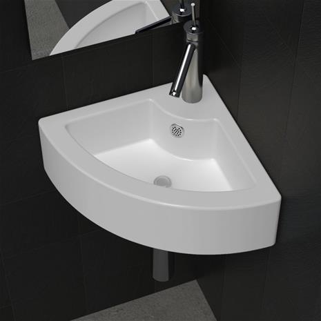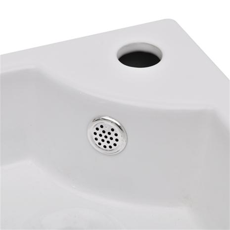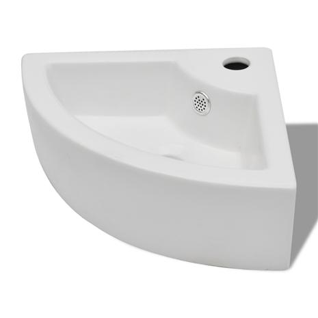 vidaXL 140697, keraaminen pesuallas lavuaari hanalla ja ylivuotoaukolla kylpyhuone nurkkamalli valkoinen hintaan 53 €