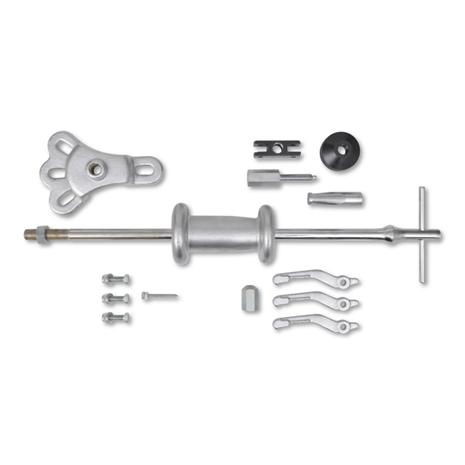 Tämä universaali liukuvasarsarja sopii yleisiin autotöihin, kuten ulosvetämään napoja, akseleita, laakereita ja paljon muuta. Sitä voidaan käyttää myös lommojen poistoon. Sarjaan kuuluu 2.5kg liukuvasara joka antaa sinulle tarkan ja kovan vedon tiukoissa paikoissa. Sisäiset ja ulkoiset leuat takaavat vetotöiden onnistumisen, kuten laakereiden, hammaspyörien ja tiivisteiden ulosvedon. Ulosveto koukku, taka-akselin ulosvetäjä ja lommojen ulosvetäjä takaavat, että tämä sarja sopii moniin töihin. Koska kaikki osat on valmistettu karkaistusta ja käsitellystä teräksestä niin se tulee kestämään vuosien käytön. Kaikki työkalut tulevat kätevässä kantolaukussa. |